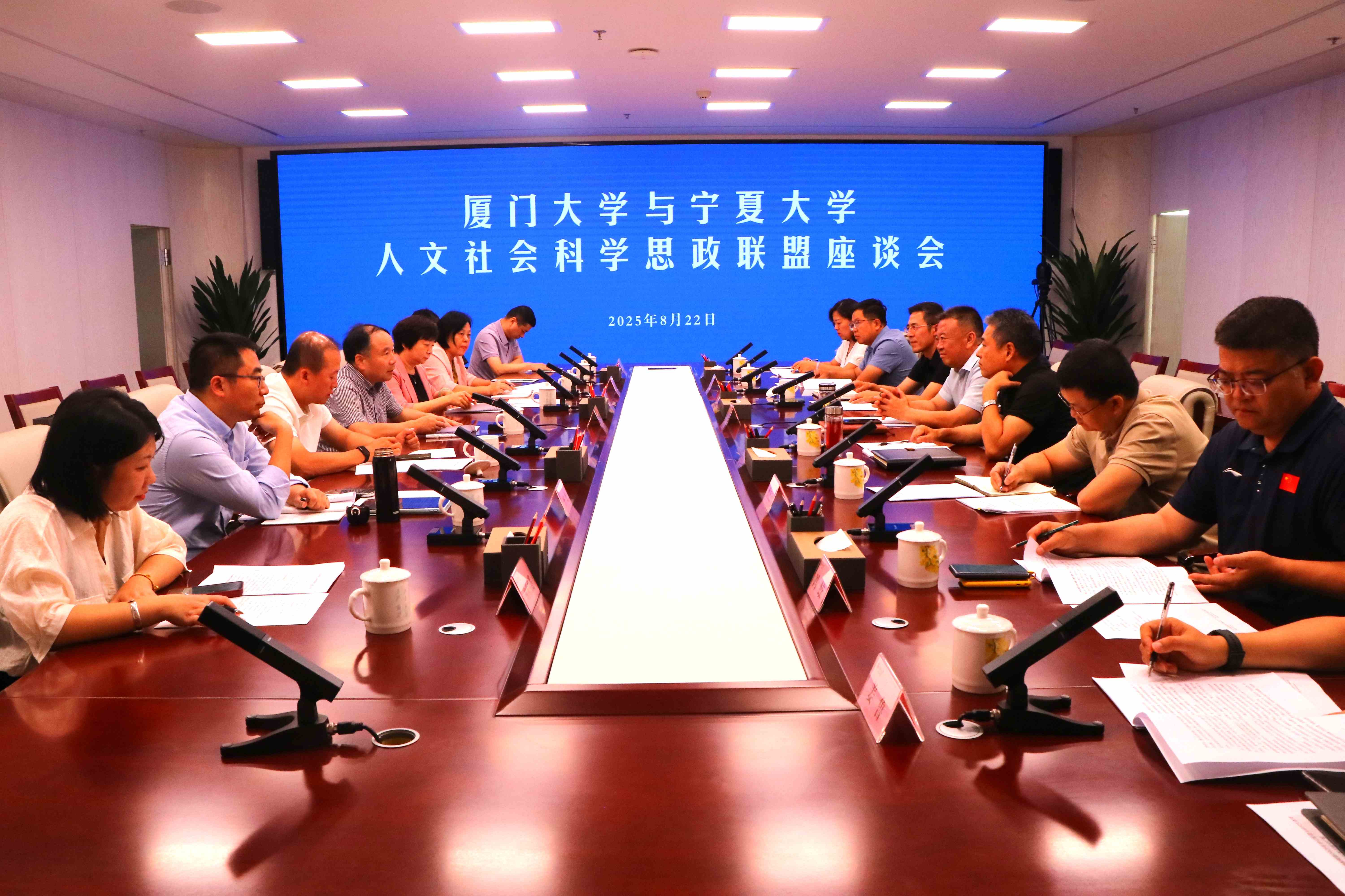 为深入贯彻落实习近平总书记重要讲话精神,提升和丰富大思政工作内涵和质量,8月22日,厦门大学与宁夏大学人文社会科学思政联盟座谈会在学校德勤楼10楼会议室召开。宁夏大学党委副书记张桓,厦门大学党委常委、宣传部部长、教师工作部部长高和荣,自治区教育厅学生工作处(思政处、教材处)处长张杰参加会议,宁夏大学党委常委、宣传部部长高永兴主持座谈会。