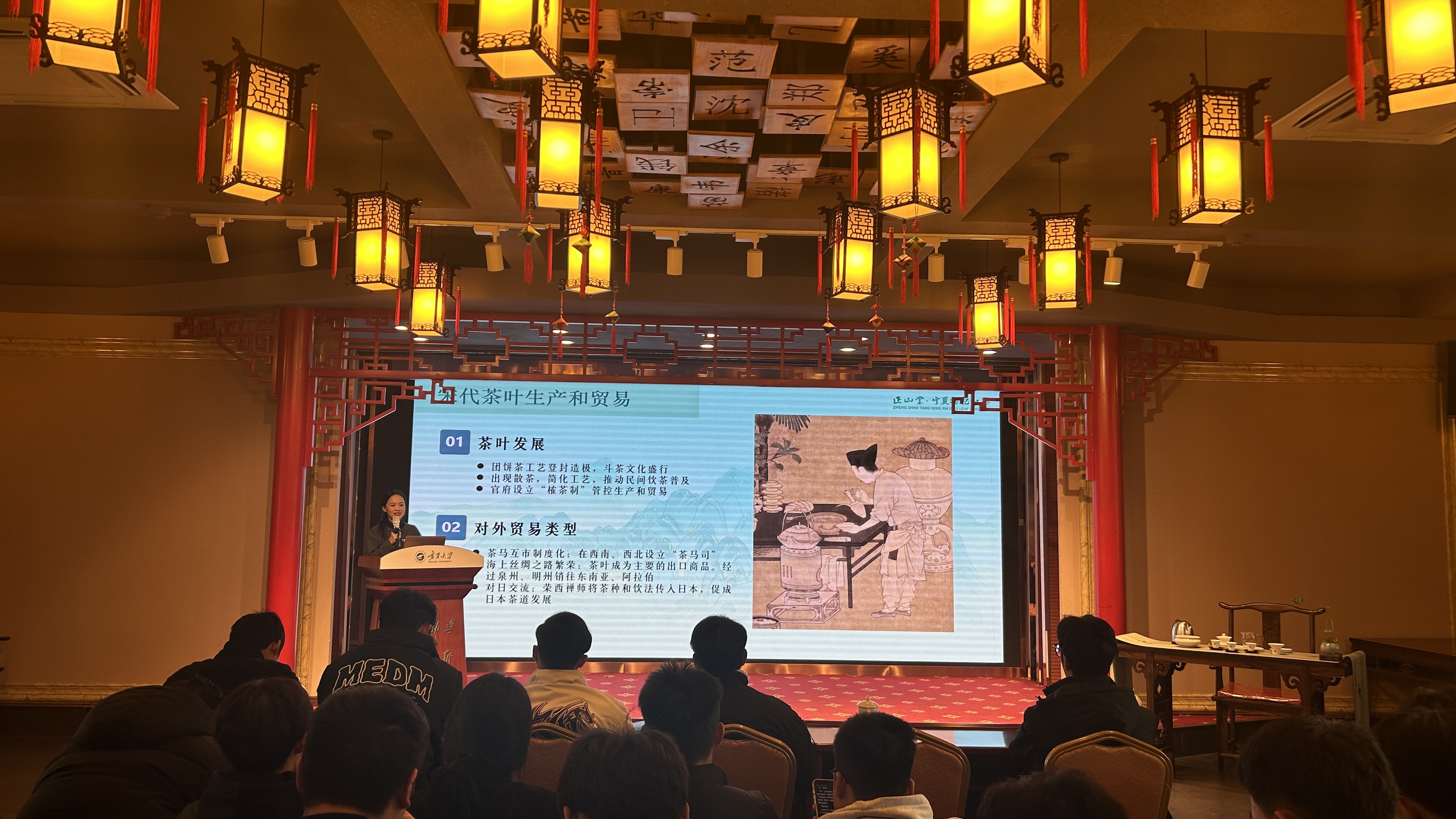 活动的第二部分“茶韵千年·红茗新篇”由正山堂专业培训师主讲。她引领大家纵览中国源远流长的茶文化,重点剖析了红茶的历史地位与分类体系,并介绍了正山堂金骏眉作为高端红茶代表的行业标杆地位。