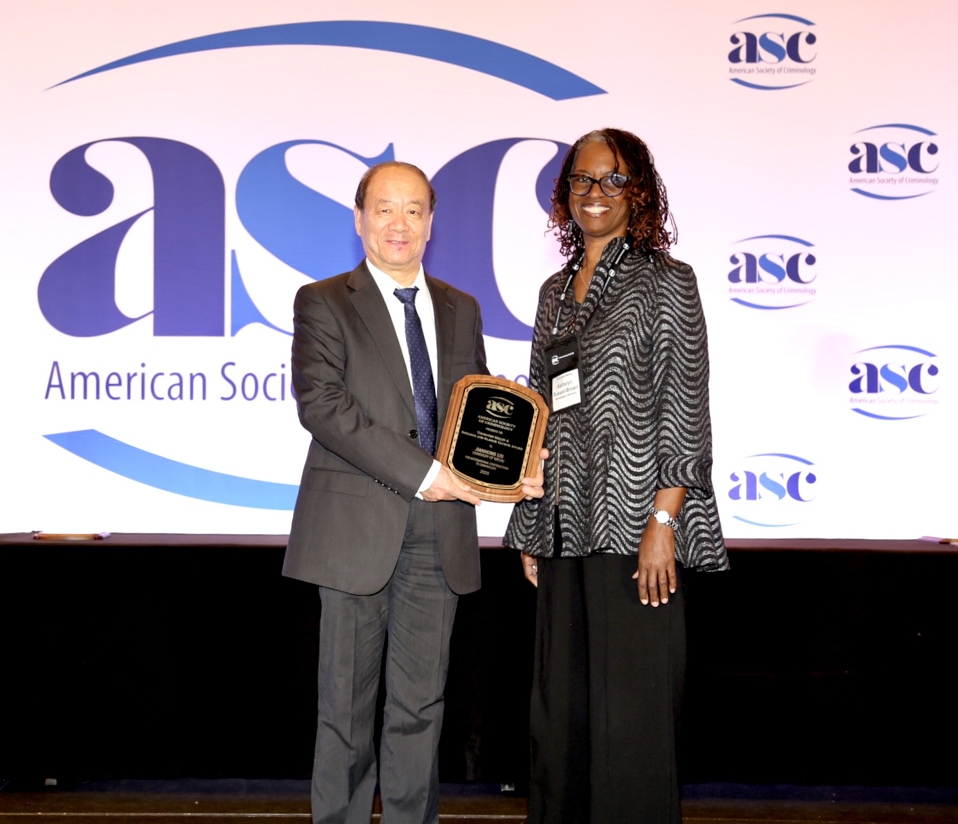 11月12日,在美国华盛顿举行的ASC年会上,学会主席Katheryn Russell-Brown向刘建宏教授颁发“塞林&格卢克奖”。此奖项旨在表彰刘建宏在国际及比较犯罪学领域的持续杰出贡献,评选委员会高度肯定其研究对全球犯罪学知识体系产生的深远影响。该奖项自1974年设立以来,全球仅有两位亚洲学者获此殊荣,彰显了刘建宏在国际学界的领军地位。