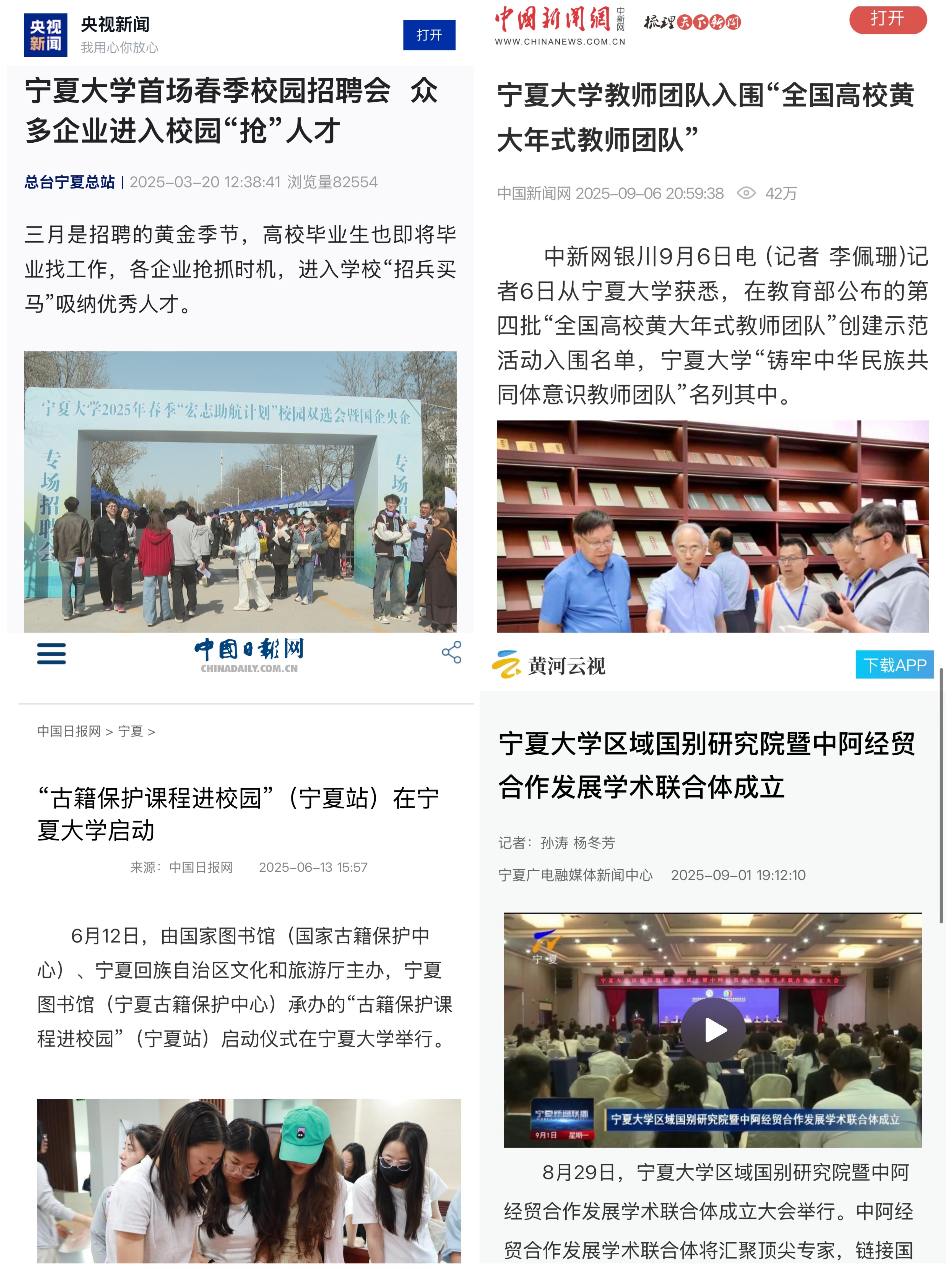 文化传承创新亮点纷呈,原创史诗舞台剧《沙枣树· 路与梦》以历史叙事展现宁夏大学在时代浪潮中的发展历程,生动诠释宁大人“不怕困难,不畏风寒;根深叶茂,本固枝荣”的精神底色;原创歌剧《山河同路》以跨时空青春对话的具象化视角将“行走的思政课”隽永呈现,让红色血脉接续流传。“艺术+思政”育人模式推陈出新,60幅党史主题画作将百年风华浓缩于方寸之间,“音乐党课”用“讲唱演”和“视听悟”的沉浸式学习直抵人心。从《跟着书本去旅行》的沉浸式文化体验、纪录片《石榴花开》的生动写照,到西夏陵海外宣传片的国际传播,一系列有分量、有温度的外宣活动,向全社会展示宁大故事。“贺兰山论坛”星光熠熠,神舟十六号航天员桂海潮,中国科学院院士张继平、郑志明,北京大学翟崑和清华大学达巍、吴大辉等顶尖专家学者的智慧分享,为师生打开仰望星空的窗口。线上线下,育人润心,宁夏大学将宣传思想文化工作转化为内涵式发展的动能,在守正创新中谱写育人新篇。