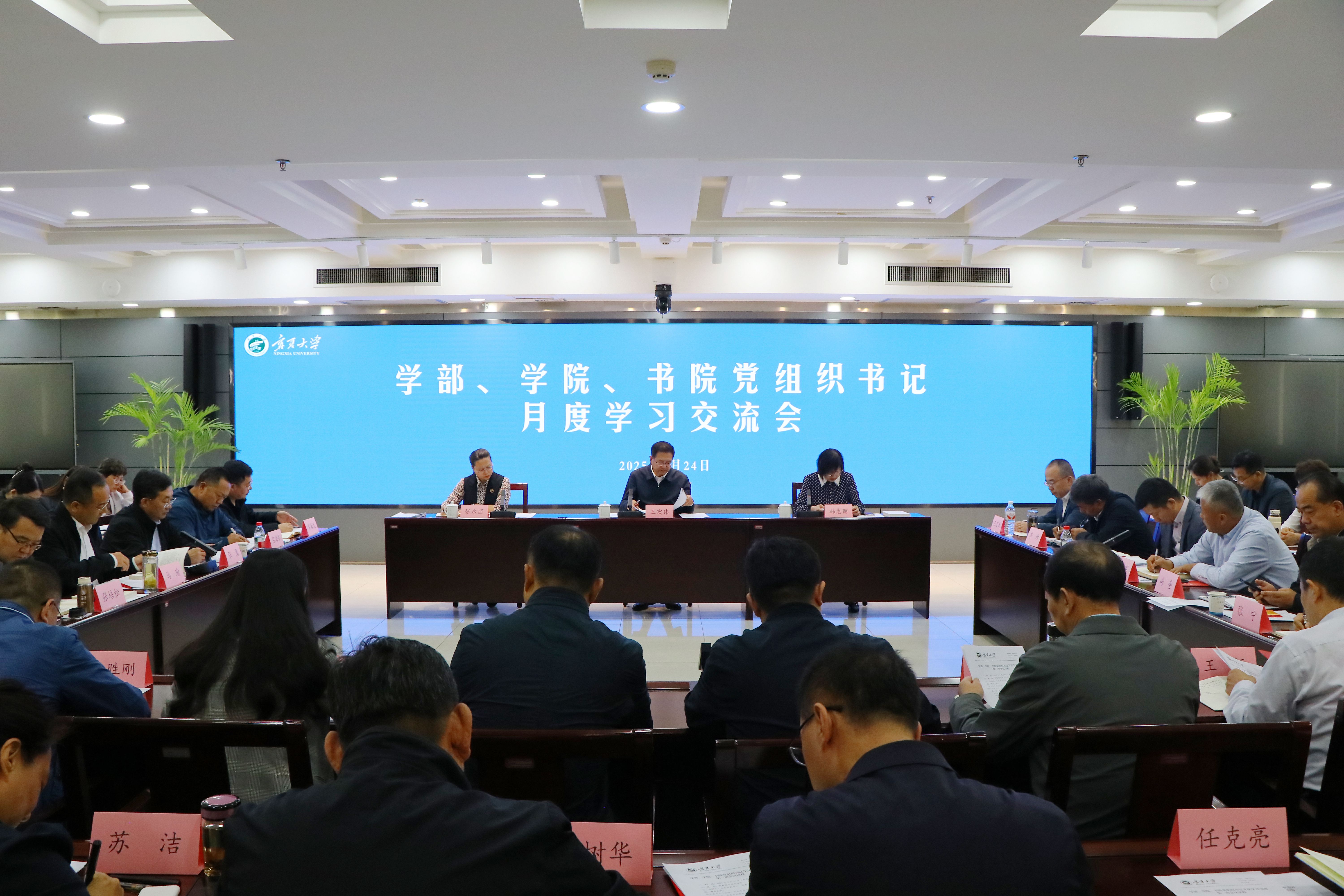 11月28日,自治区党委书记、人大常委会主任李邑飞到宁夏大学调研宣讲党的二十届四中全会精神,强调要深入学习贯彻党的二十届四中全会和习近平总书记考察宁夏重要讲话精神,全面落实自治区党委十三届十一次全会部署安排,一体推进教育科技人才发展,奋勇争先、拼搏实干、团结奋斗,加快建设美丽新宁夏、奋力谱写中国式现代化宁夏篇章。殷殷嘱托催人奋进,全校上下倍感振奋。党的二十届四中全会召开以来,学校以高度的政治自觉掀起学习贯彻热潮,将全会精神转化为谋划“十五五”发展的生动实践,深入开展“大调研、大走访”活动,形成了40个重点调研报告。中共宁夏大学第八届委员会第二次全体会议为学校“十五五”规划绘制“施工图”,围绕“双一流”建设、体制机制改革、高质量发展、资源保障等关键议题碰撞思想火花。党委常委会会议、党委理论学习中心组学习会将所学所悟同学校发展紧密结合,以问题导向破解瓶颈,以目标引领明晰路径。从理论学习到实践谋划,宁夏大学正以党的二十届四中全会精神为航标,在教育强国的征程上奋力书写宁大担当。